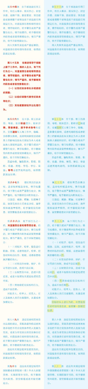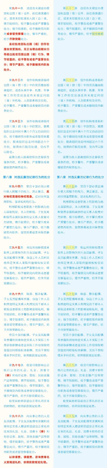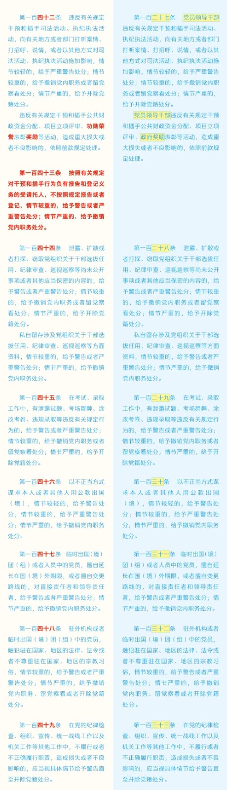 《中國(guó)共產(chǎn)黨紀(jì)律處分條例》修訂條文對(duì)照表 發(fā)表時(shí)間:2024-01-04